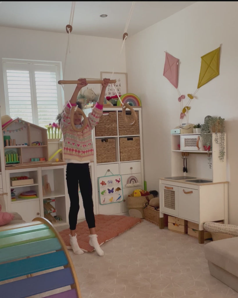 Twist, turn and soar with the Acrobat, a unique combination of the Lillagunga Rings and Bone trapeze! With independently adjustable rings and trapeze, kids can explore endless ways to move, play, and challenge themselves -learning new skills while having fun. Designed with a comfortable, ergonomic grip, it ensures safe and secure play. Whether mastering tricks, building strength, or simply enjoying the joy of movement, the Acrobat is the perfect companion.