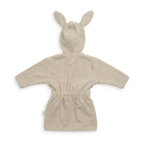 Baðsloppurinn er fullkominn til að nota eftir bað, sturtu eða sund. Mjúki efnið í sloppnum dregur auðveldlega í sig vatn og heldur barninu hlýju. Hettan er með krúttleg eyru og þurrkar hárið auðveldlega. Baðsloppurinn er líka sniðugur til að hafa með sér í ferðalög.