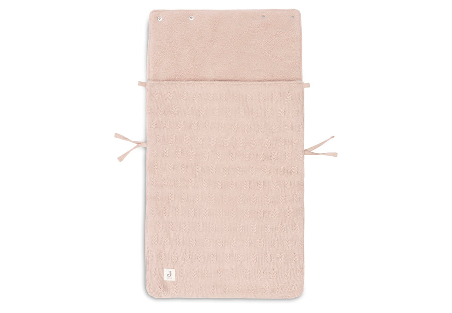Bílstólapoki með fallegu prjónuðu efni að utan og mjúku flísefni að innan sem tryggir að barninu líði einstaklega vel. Auðvelt er að setja barnið í pokann og taka það úr með því að renna honum alveg niður. Það er einnig auðvelt að smella honum saman efst og búa til hettu, þannig að höfuð barnsins verði ekki kalt um leið og farið er með bílstólinn út. Til þess að tryggja að barninu verði ekki of heitt í bílnum er ráðlagt að opna rennilásinn á pokanum eins mikið og þarf.