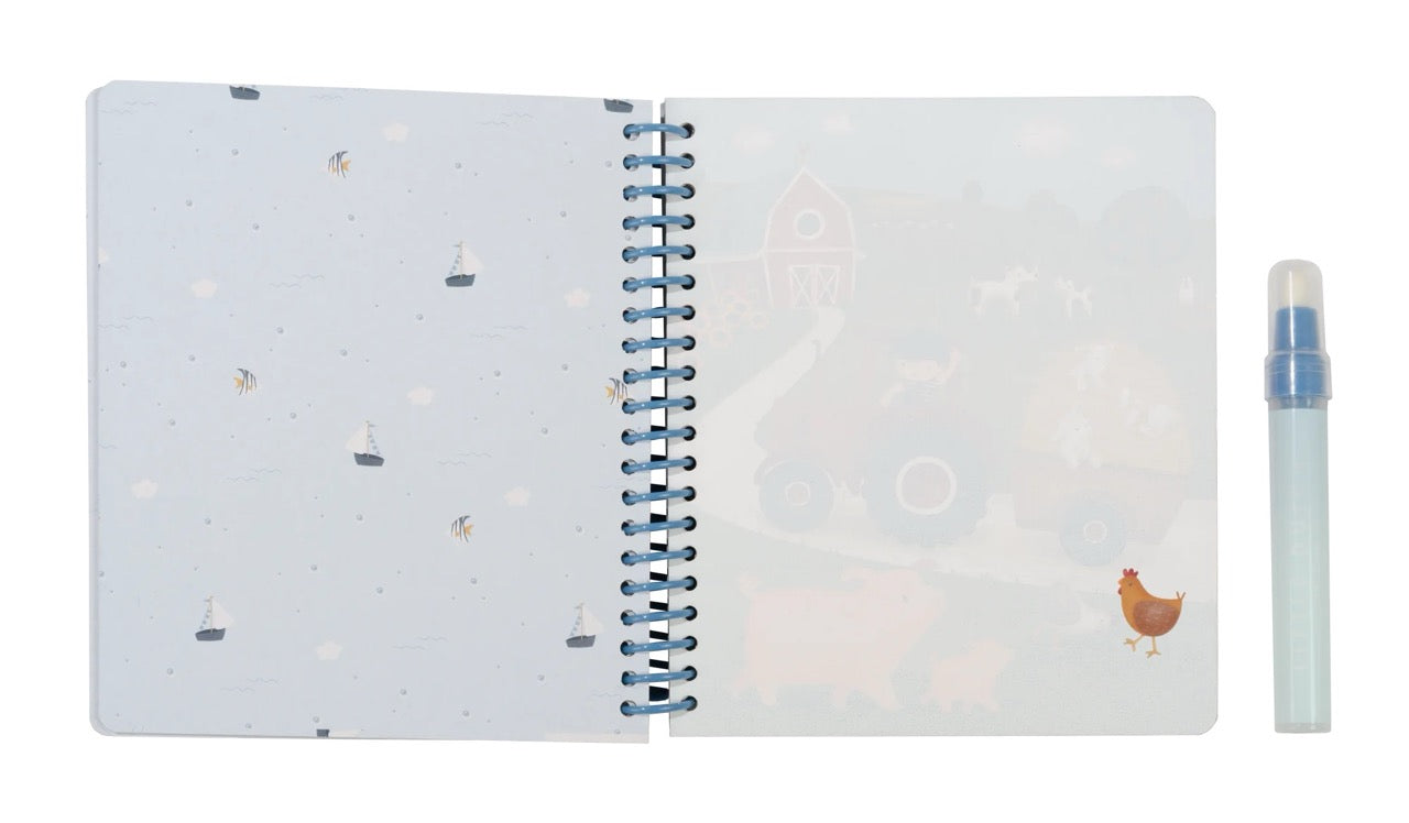 These magical colouring pages in Little Dutch's 'Jim & Friends' water colouring book are a special colouring activity for budding artists. The magic marker allows children to colour with water by going over the drawings with it. The colours conjure up! Join Jim and his friends on adventures underwater, on the farm, the beach, on safari and in space. The colouring set includes five sturdy colouring cards and a pen that can do magic when filled with water.