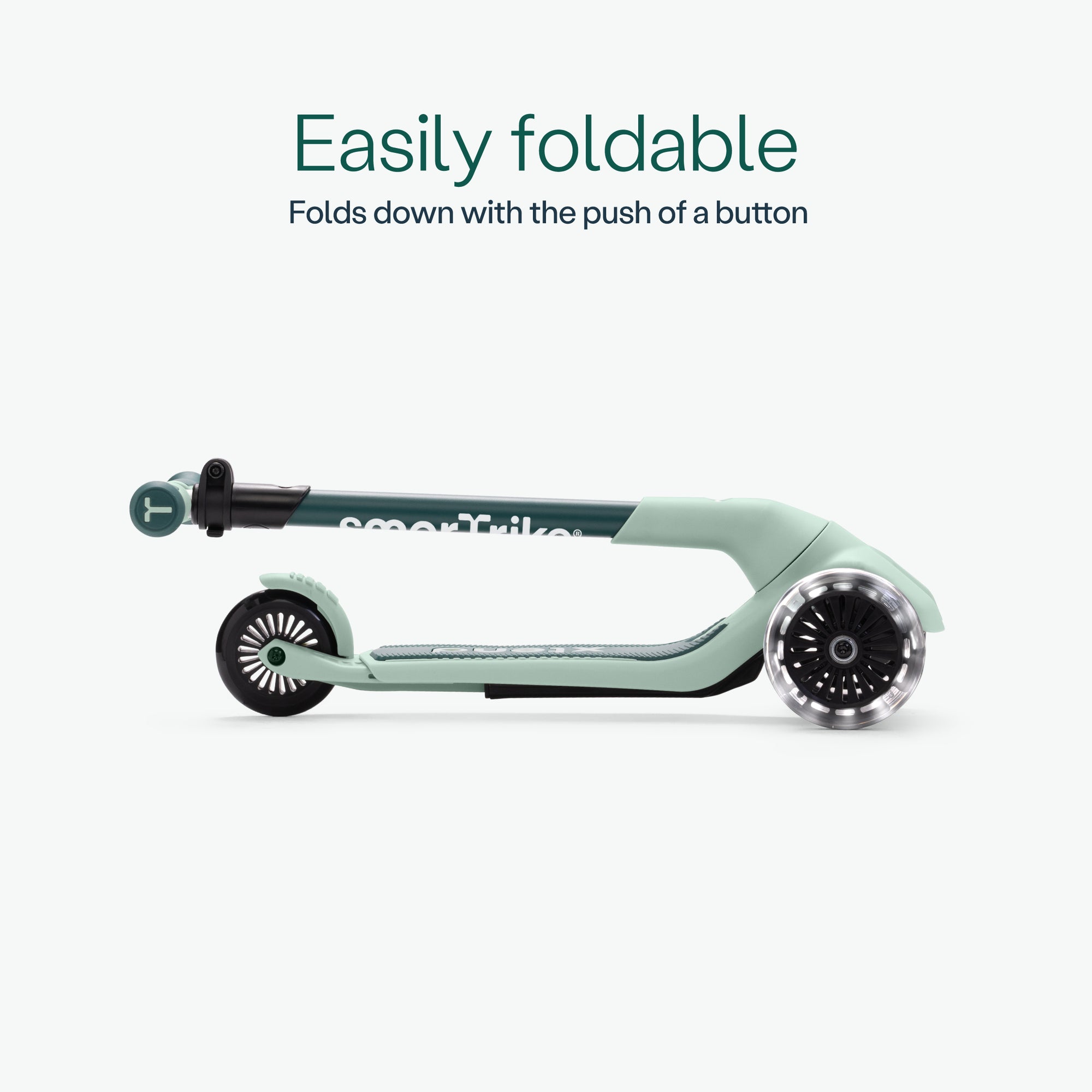 - LED light-up wheels for visibility, safety and fun