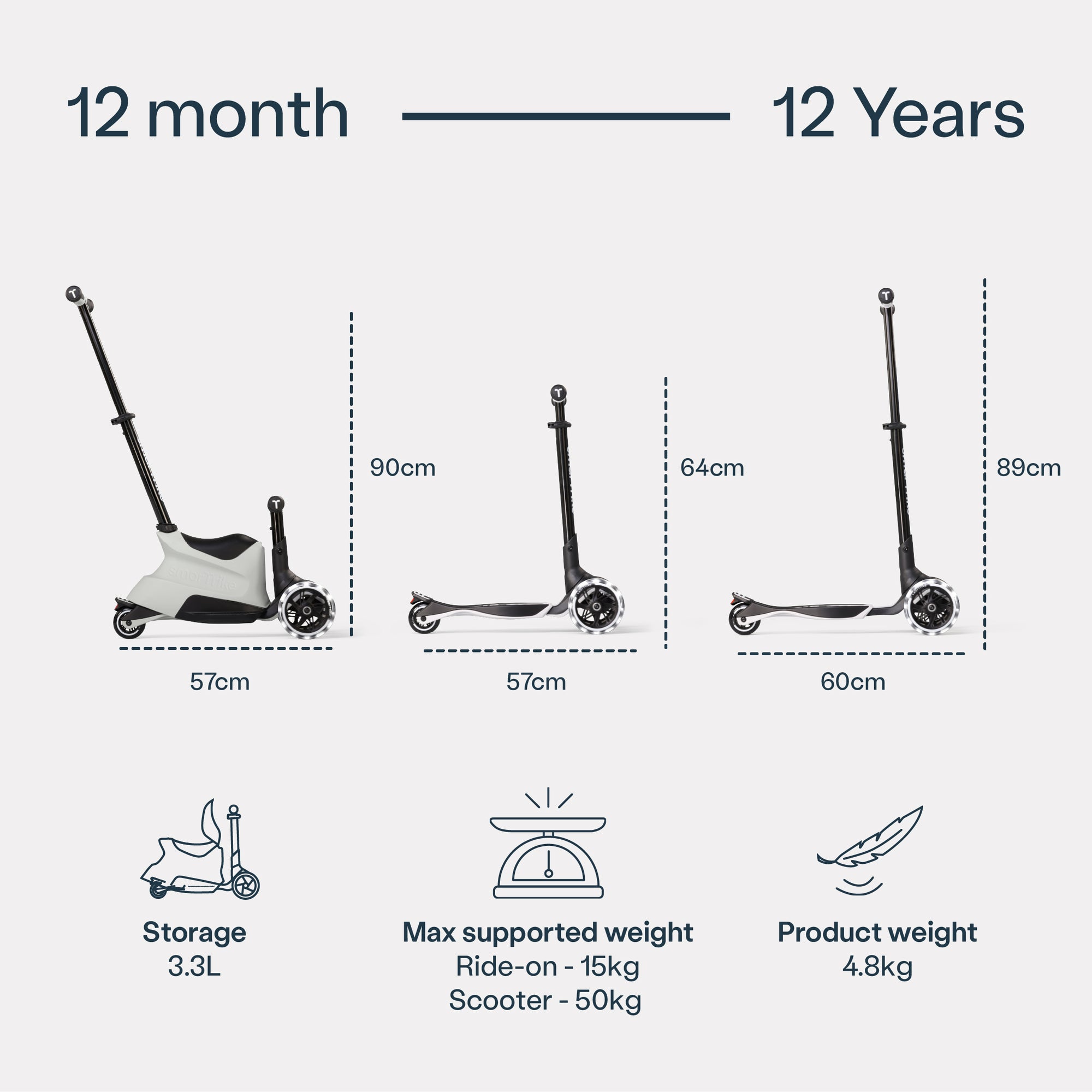 What truly makes the Xtend Ride-on the only ride they'll need, is its age range! from toddler rideable to tween scooter, it's got it all.