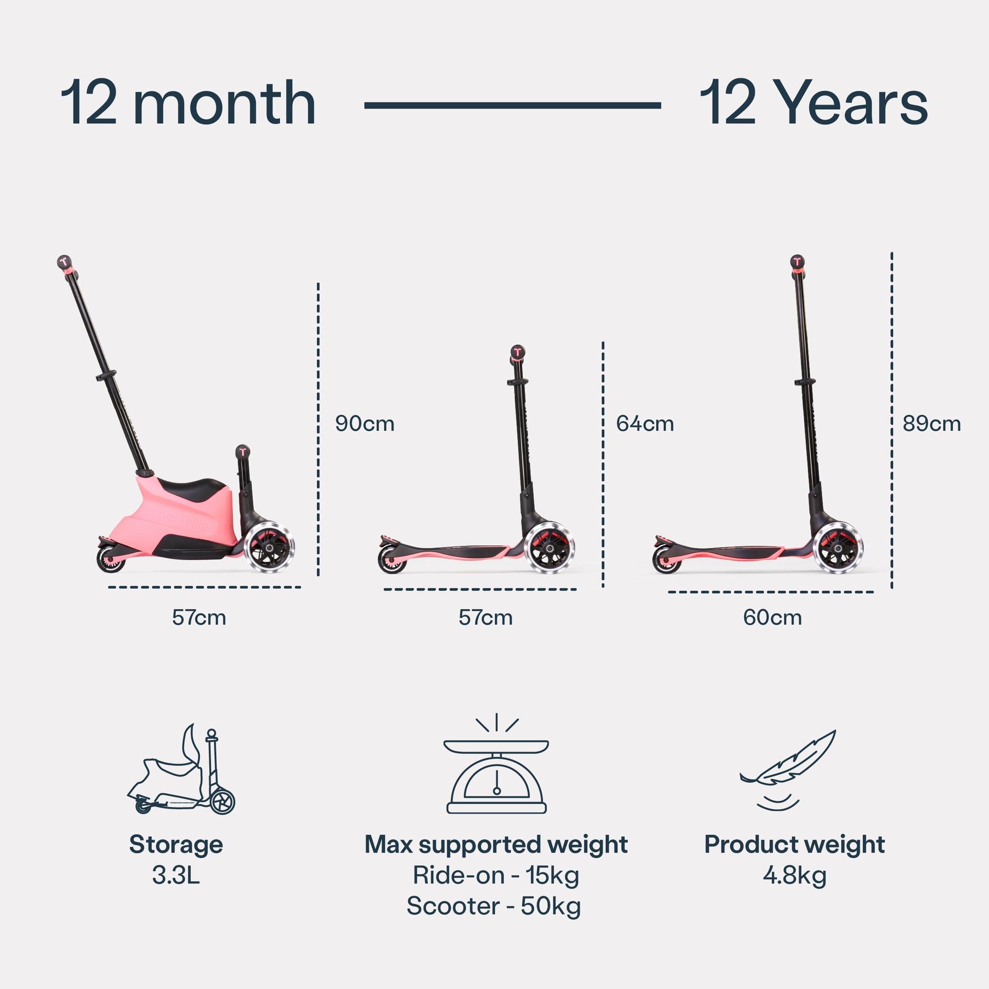 What truly makes the Xtend Ride-on the only ride they'll need, is its age range! from toddler rideable to tween scooter, it's got it all.